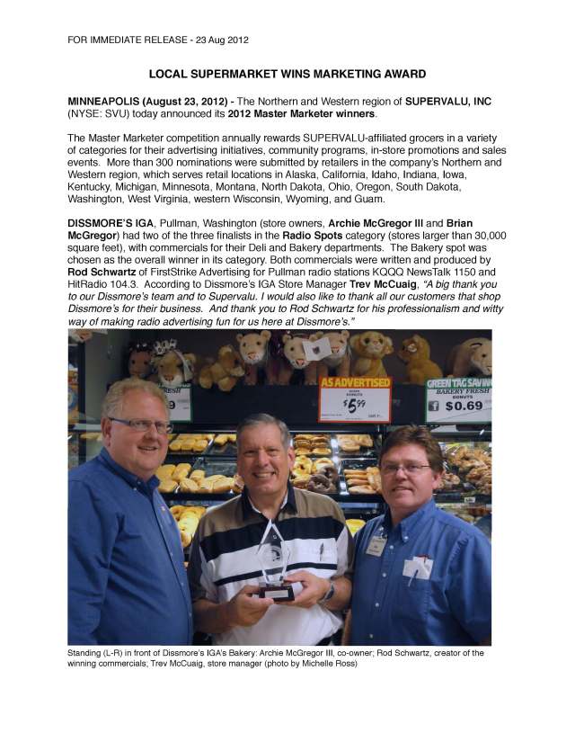 On the same day the Radio Mercury Finalists were announced (my lone entry not having made the final cut), I received word that one of my favorite clients, a local supermarket, had won top honors in a recent marketing competition involving more than 300 SUPERVALU stores, for a radio spot I’d created for them.